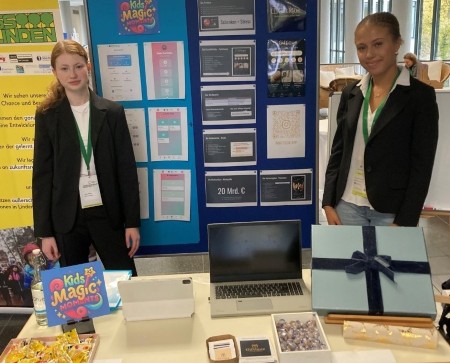 Leonie Mertins und Naomi Kenfack aus der Klasse 10d gehören mit ihren im Wirtschaftskurs von Herrn Pfürtner erarbeiteten Geschäftsideen zu den 10 besten Schülerinnen und Schülern in Deutschland und konnten am 12. Oktober 2025 am diesjährigen Bundeswettbewerb des Network For Teaching Entrepreneurship (NFTE) ihre Geschäftsideen präsentieren.