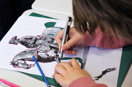Die Schülerinnen und Schüler setzten sich insbesondere durch praktisch-produktive Tätigkeiten mit dem Künstler, seiner Arbeitsweise und künstlerischen Haltung auseinander. Schon im Vorfeld haben sie sich theoretisch im Kunstunterricht mit dem Künstler und seinem Werk, seiner Zeit und dem künstlerischen Material auseinander gesetzt.