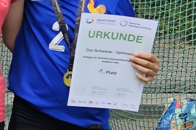 Die Mädchenmannschaft des Schadow-Gymnasium wurde am Donnerstag, 3.7.2025 ungeschlagen Berliner Meister im Schulhockey und qualifizierte sich für das Bundesfinale vom 22.-24.  September 2025.